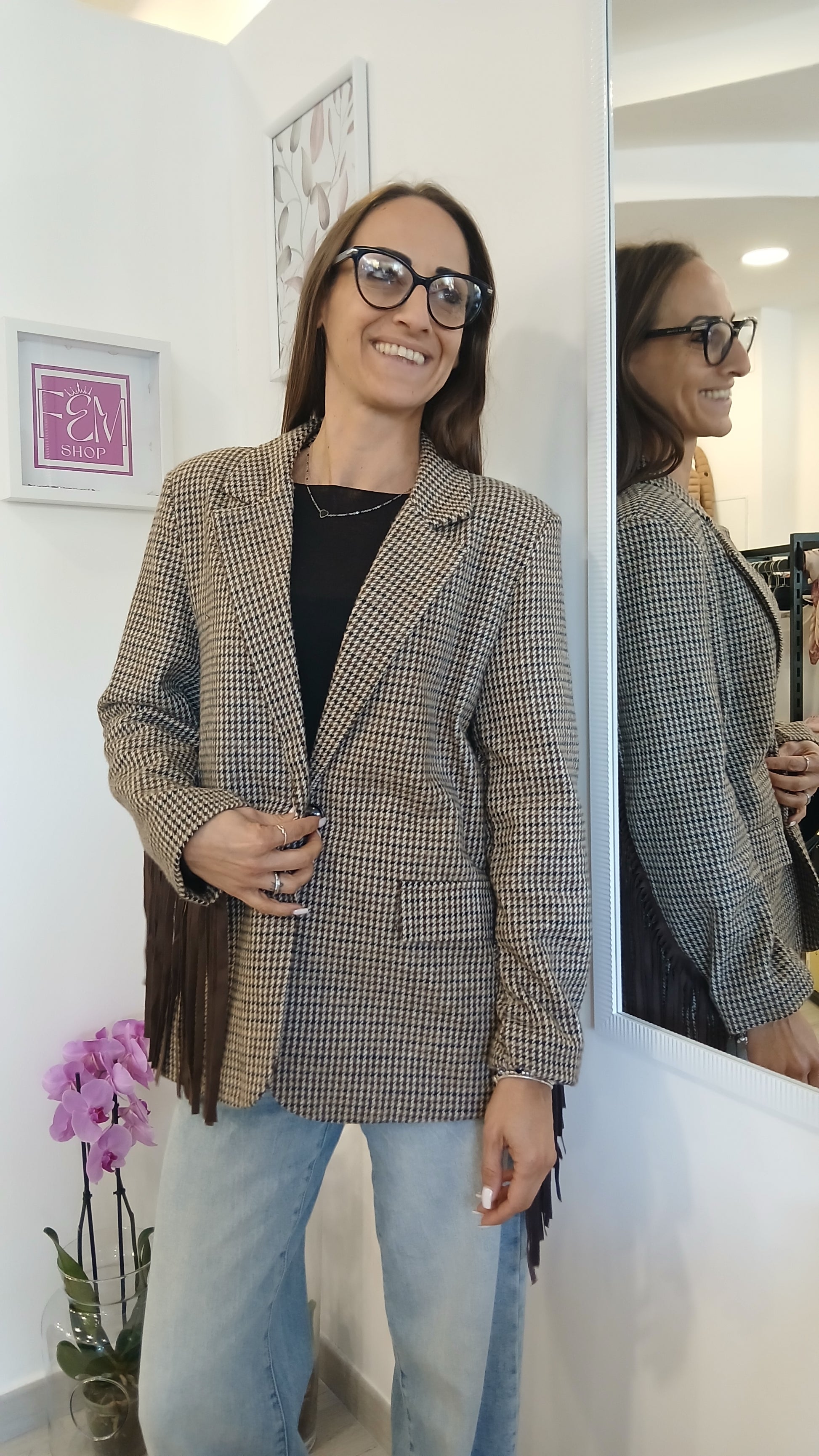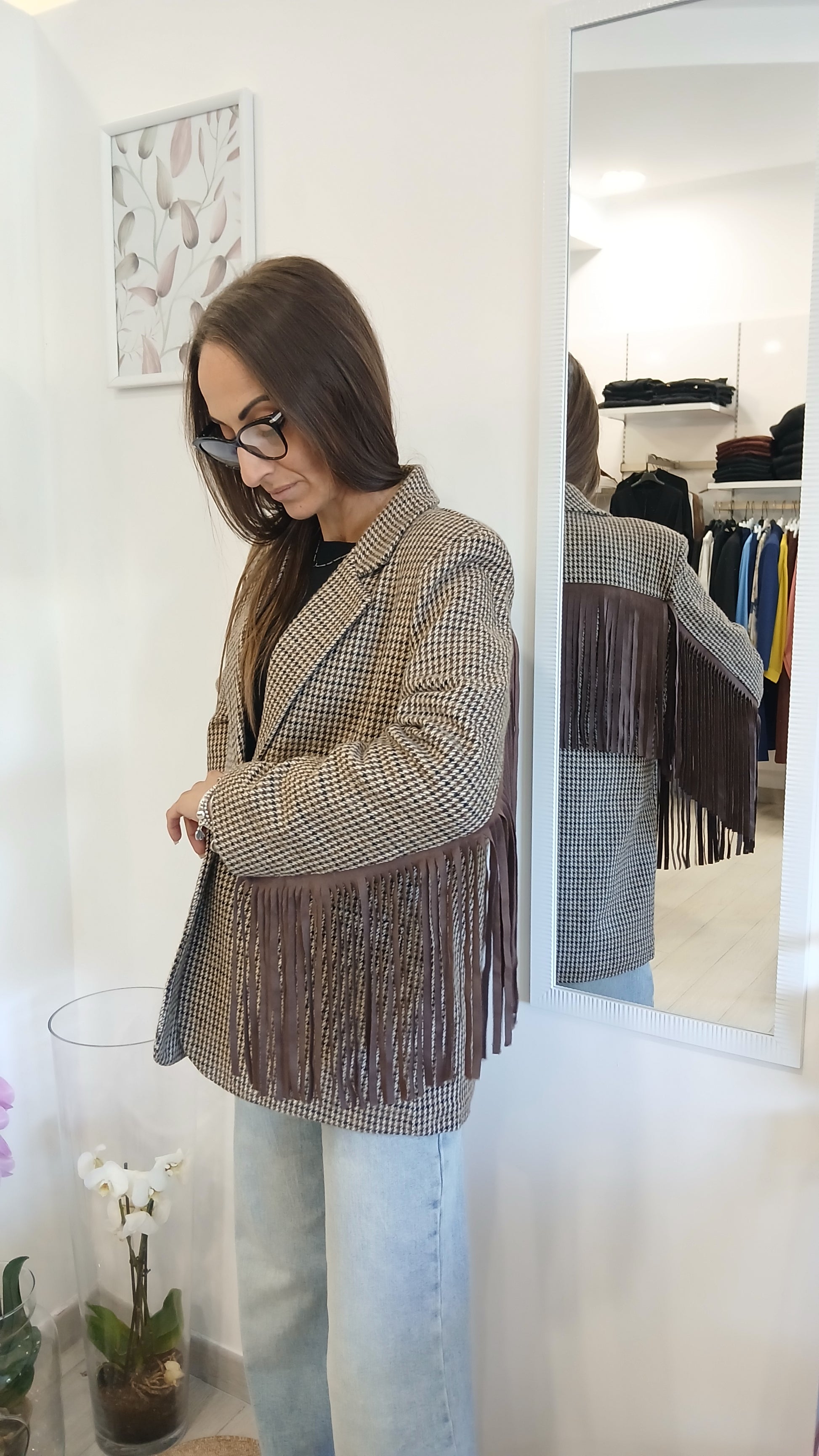 Giacca Quadri e frange VicBee