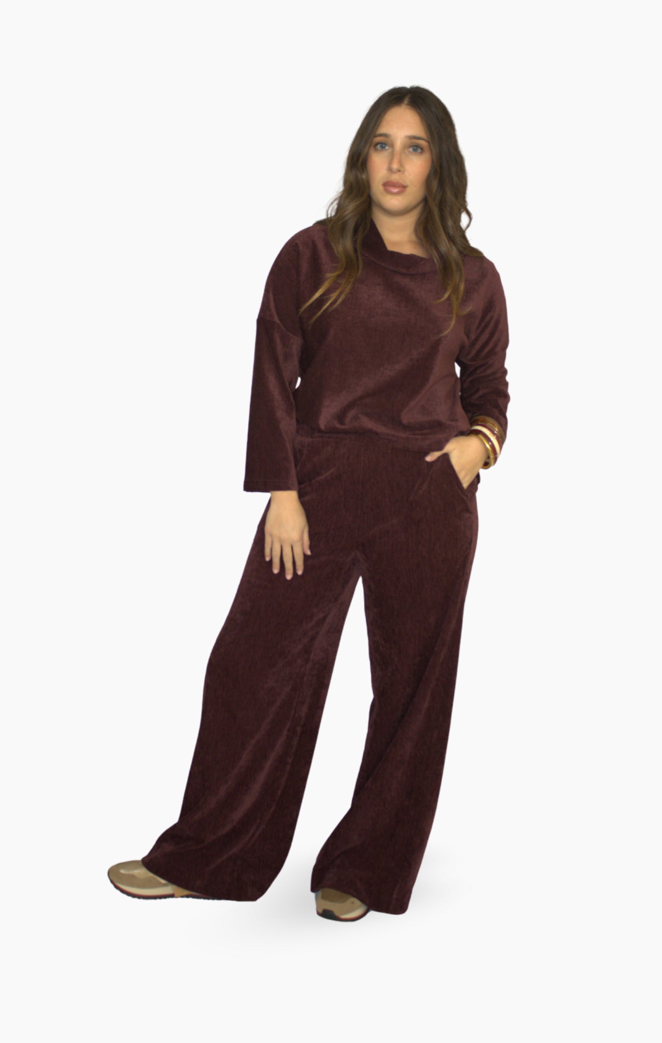 Maglia collo cratere completo ciniglia Via Stendhal da abbinare col suo pantalone largo.